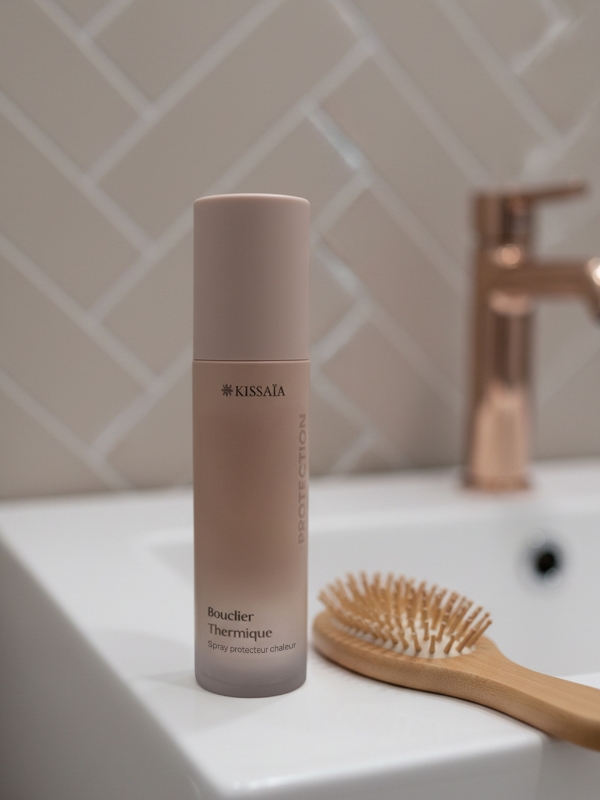Le bouclier thermique cheveux KISSAÏA est un soin capillaire professionnel conçu pour protéger efficacement les cheveux contre les dommages causés par les outils chauffants tels que le sèche-cheveux, le fer à lisser ou le fer à boucler. Sa formule enrichie en kératine, protéines, aloe vera et extrait de bardane forme un voile protecteur autour de la fibre capillaire afin de limiter la déshydratation et la casse liées à la chaleur. Les filtres UV contribuent également à préserver la qualité du cheveu face aux agressions extérieures. Sa texture légère en spray n’alourdit pas les cheveux et facilite le démêlage ainsi que le coiffage. Avec le bouclier thermique cheveux, les cheveux restent souples, brillants et protégés, même en cas d’utilisation régulière d’appareils chauffants. Un indispensable des routines capillaires professionnelles pour préserver la santé et la beauté des cheveux.